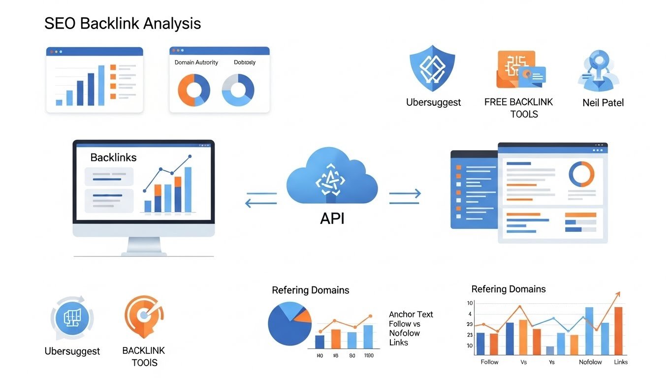 Free tools like Ubersuggest, Small SEO Tools, or Neil Patel’s backlink checker can supplement your API data. Use them to: